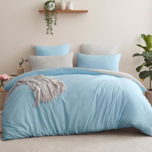 Aisbo Super King Size Duvet Cover Set - 3Pcs Reversible Bedding Bed Set Light Blue and Beige Superking Soft Brushed Microfiber Quilt Cover with 2 Pillowcases 50x75cm