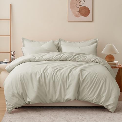Soifox Super King Duvet Cover Set - Sage Green Bedding Set Superking Size Bed with Zipper Closure, Soft Microfiber Quilt Cover with 2 Pillowcases