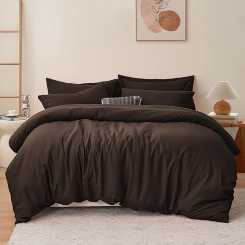 RUIKASI Brown Super King Duvet Cover Sets Bedding Set - Chocolate Duvet Set Superking Bed Set with Zip, Soft Brushed Microfibre Super King Size Quilt Cover with 2 Pillowcases