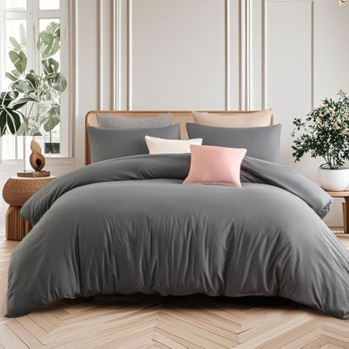 Aisbo Super King Duvet Covers Set Grey - 3Pcs Superking Size Bedding Set Soft Brushed Microfiber Quilt Cover with 2 Pillowcases