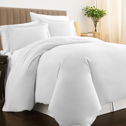 Soifox Super King Duvet Cover White, Microfiber Solid Superking Bedding Duvet Cover Set with 2 Matching Pillowcases, Ultra Soft Non Iron Breathable (Super King (220 x 260 cm))