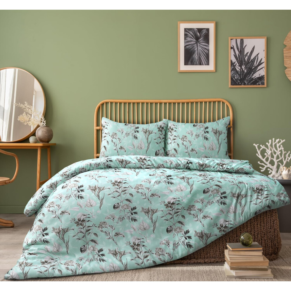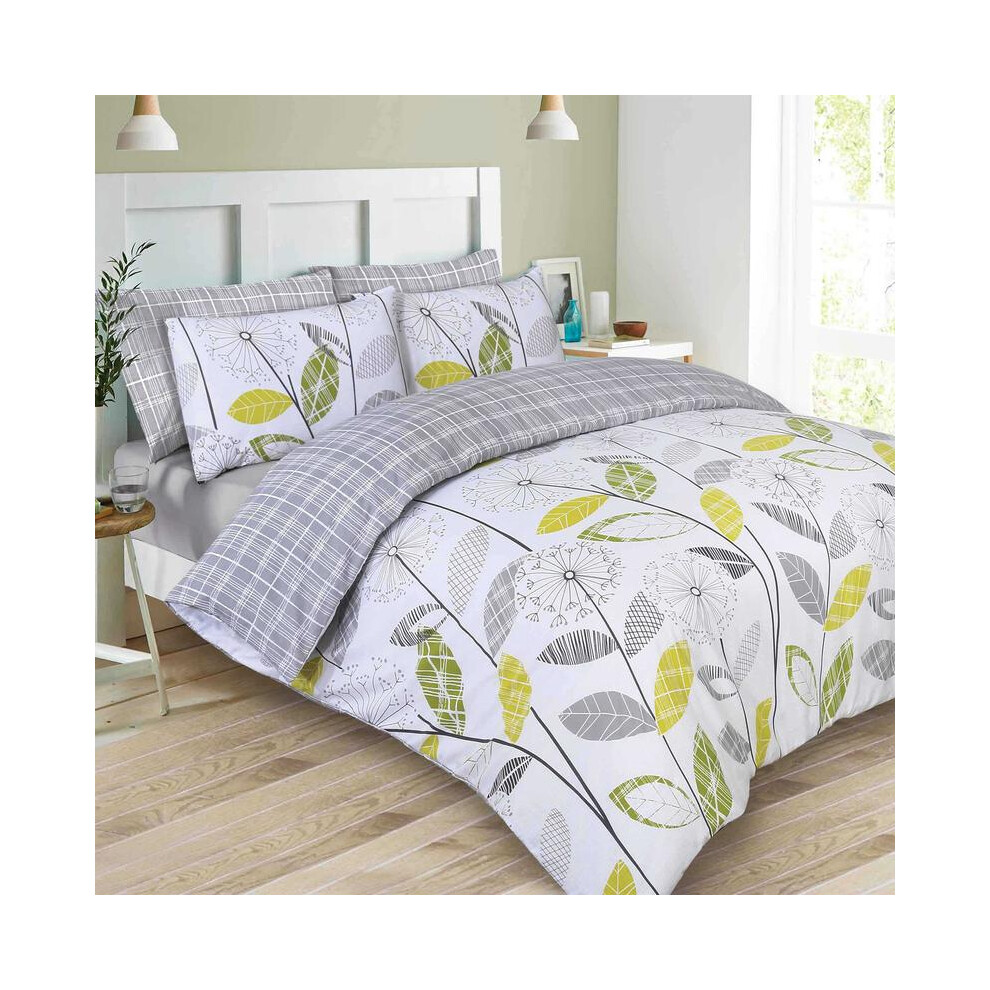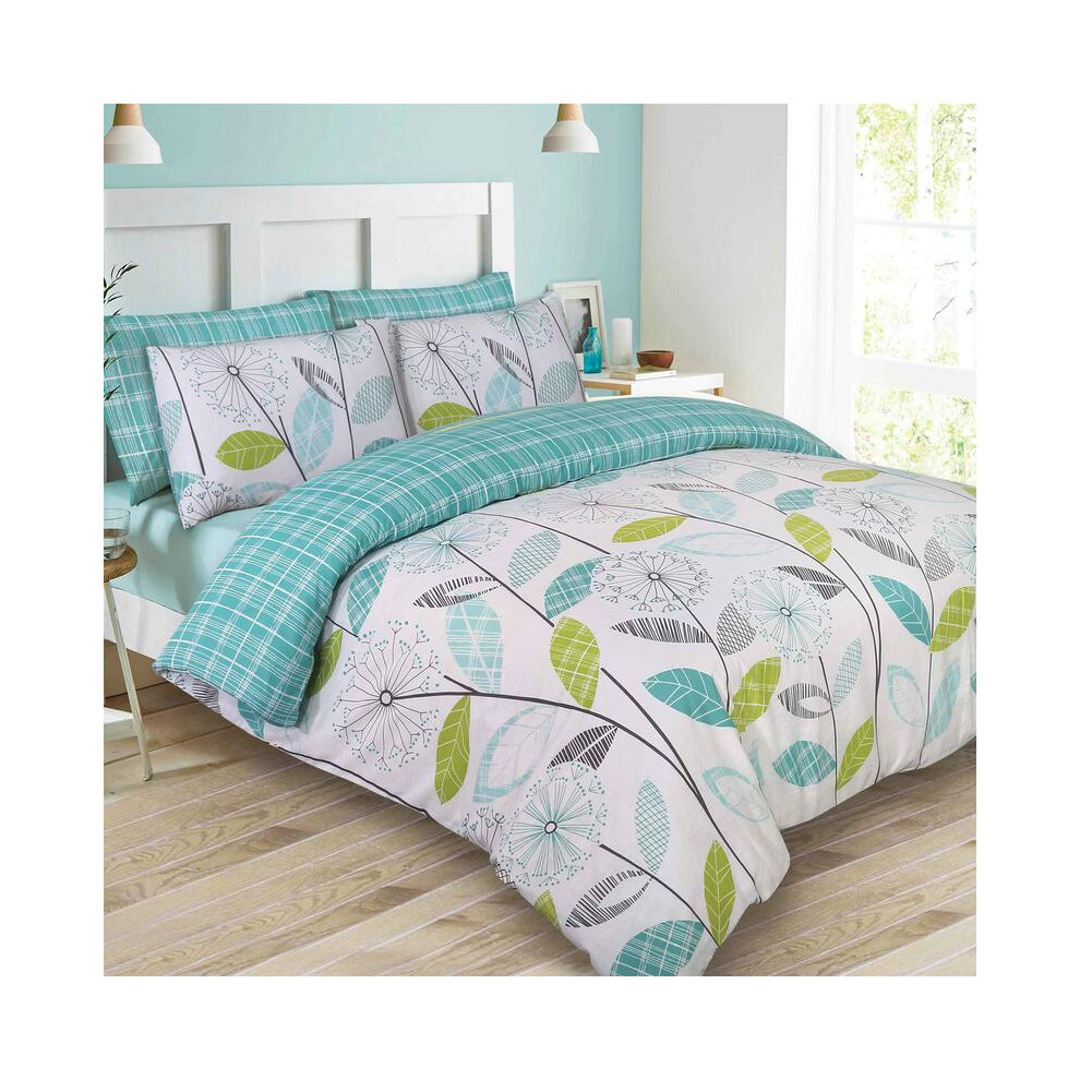 (Teal Green, Superking) OHS Allium Duvet Cover with Pillowcase Reversible Check Bedding Set Grey