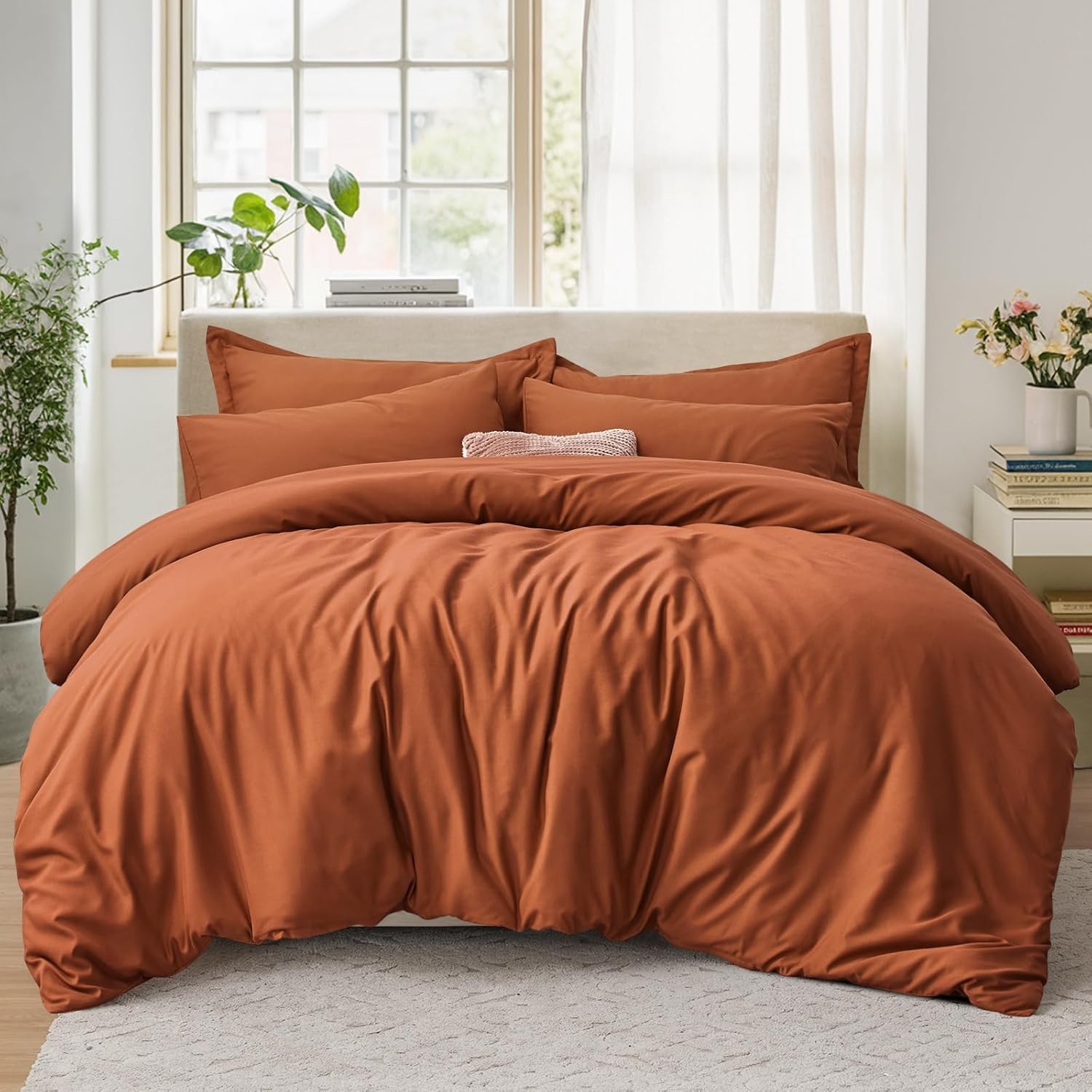 Aisbo Superking Duvet Set with Sheet - Burnt Orange 4 Pieces Microfiber Bedding Set for Super King Bed, Includes Duvet Cover, Fitted Sheet and Pillowcases