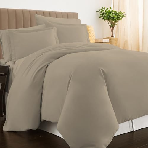 Pizuna Luxurios Cotton Super King Duvet Cover Set Simply Taupe, 800 Thread Count 100% Long Staple Cotton Superking Duvet Cover 260x220cm, Sateen Quilt Cover with Button Closure (Bedding Duvet Sets)
