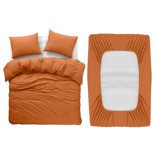 BedLooms 4 Piece Super King Bedding Set Rust Duvet Cover Sets Fitted Sheet with Pilow cases Superking Duvet Set Soft and Fade Resistant Brushed Microfiber Bedding Quilt Cover