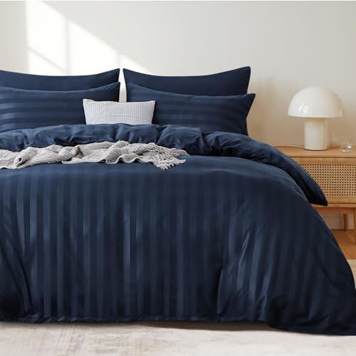 Tifschlaf Super King Duvet Set - Satin Stripes Superking Duvet Cover with 2 Pillowcases, Ultrasoft Reversible Quilt Bedding Set with Zipper Closure, Blue (260x220)