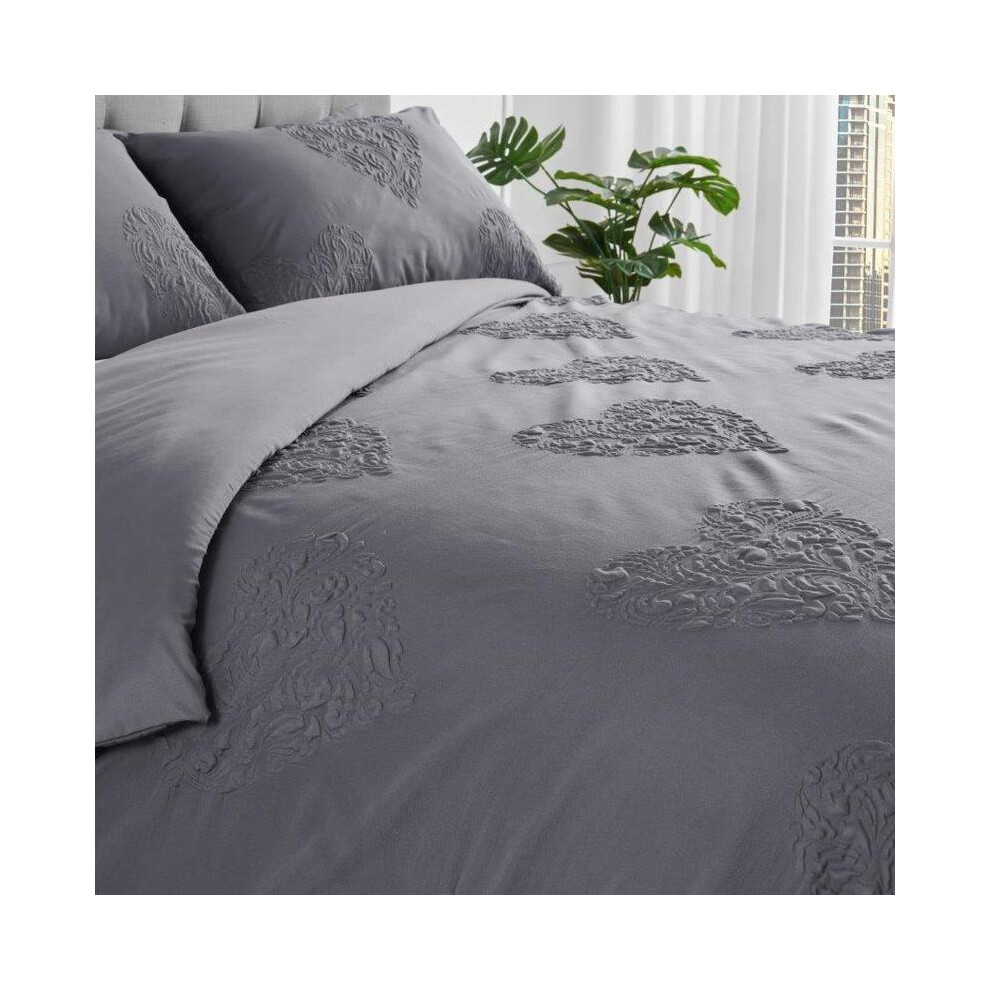 (Grey, Superking) Duvet Cover Microfiber Bedding Set with Pillowcase Soft Quilt Covers Double King