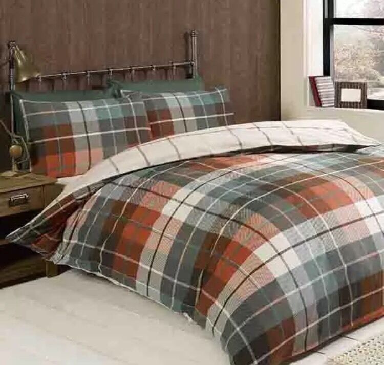 Lomond SuperKing Duvet Set 100% Brushed Cotton Terracotta/Green CHEAPEST ON EBAY