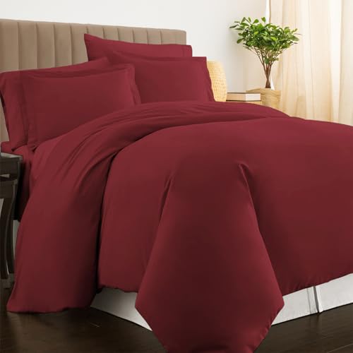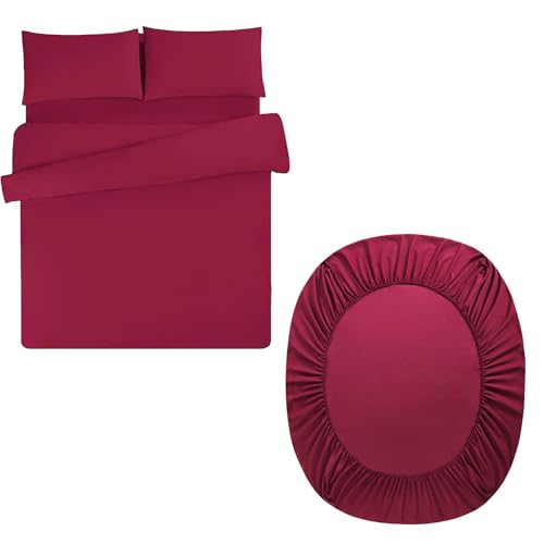 Aisbo Superking Duvet Set with Sheet - Red 4 Pieces Microfiber Bedding Set for Super King Bed, Includes Duvet Cover, Fitted Sheet and Pillowcases