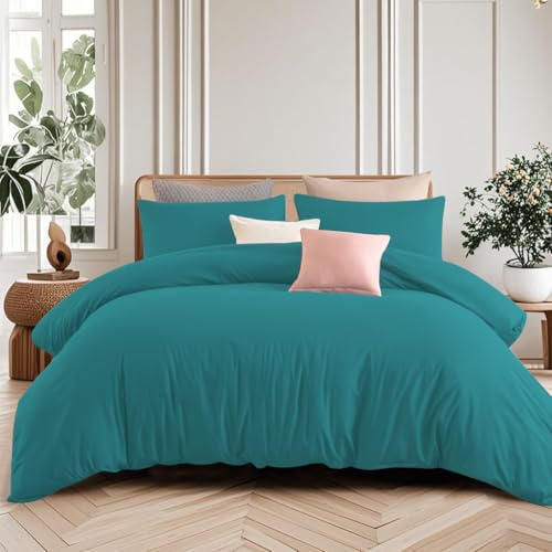 Soifox Super King Duvet Cover Teal, Microfiber Solid Superking Bedding Duvet Cover Set with 2 Matching Pillowcases, Ultra Soft Non Iron Breathable (Super King (220 x 260 cm))