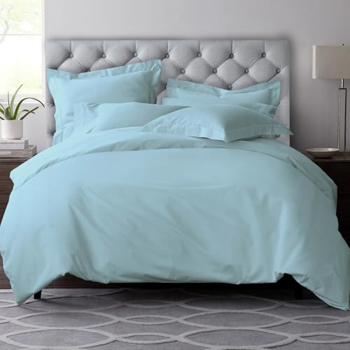 Pizuna Pure Combed Cotton Super King Duvet Cover Set Baby Blue, 600 Thread Count 100% Long Staple Cotton Superking Duvet Cover 260x220cm, Sateen Quilt Cover with Button Closure (Bedding Duvet Sets)