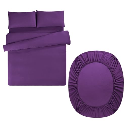 Aisbo Superking Duvet Set with Sheet - Purple 4 Pieces Microfiber Bedding Set for Super King Bed, Includes Duvet Cover, Fitted Sheet and Pillowcases