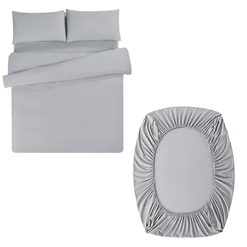 Aisbo Superking Duvet Set with Sheet - Light Grey 4 Pieces Microfiber Bedding Set for Super King Bed, Includes Duvet Cover, Fitted Sheet and Pillowcases