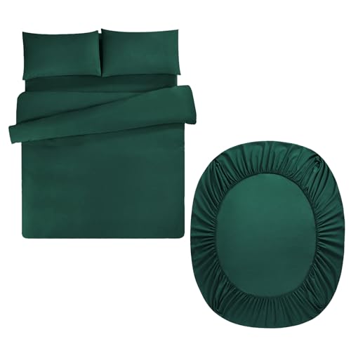 Aisbo Superking Duvet Set with Sheet - Dark Green 4 Pieces Microfiber Bedding Set for Super King Bed, Includes Duvet Cover, Fitted Sheet and Pillowcases