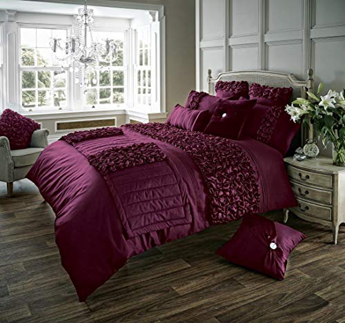 Gaveno Cavailia Fancy Frill SuperKing Duvet Set Verina Aubergine, Elegant Bedding, 3 Piece Cotton Blend Reversible Bedlinen, Easy Care DuvetCover Bedset, 1 Quilt Cover and 2 Pillow Cases,272144