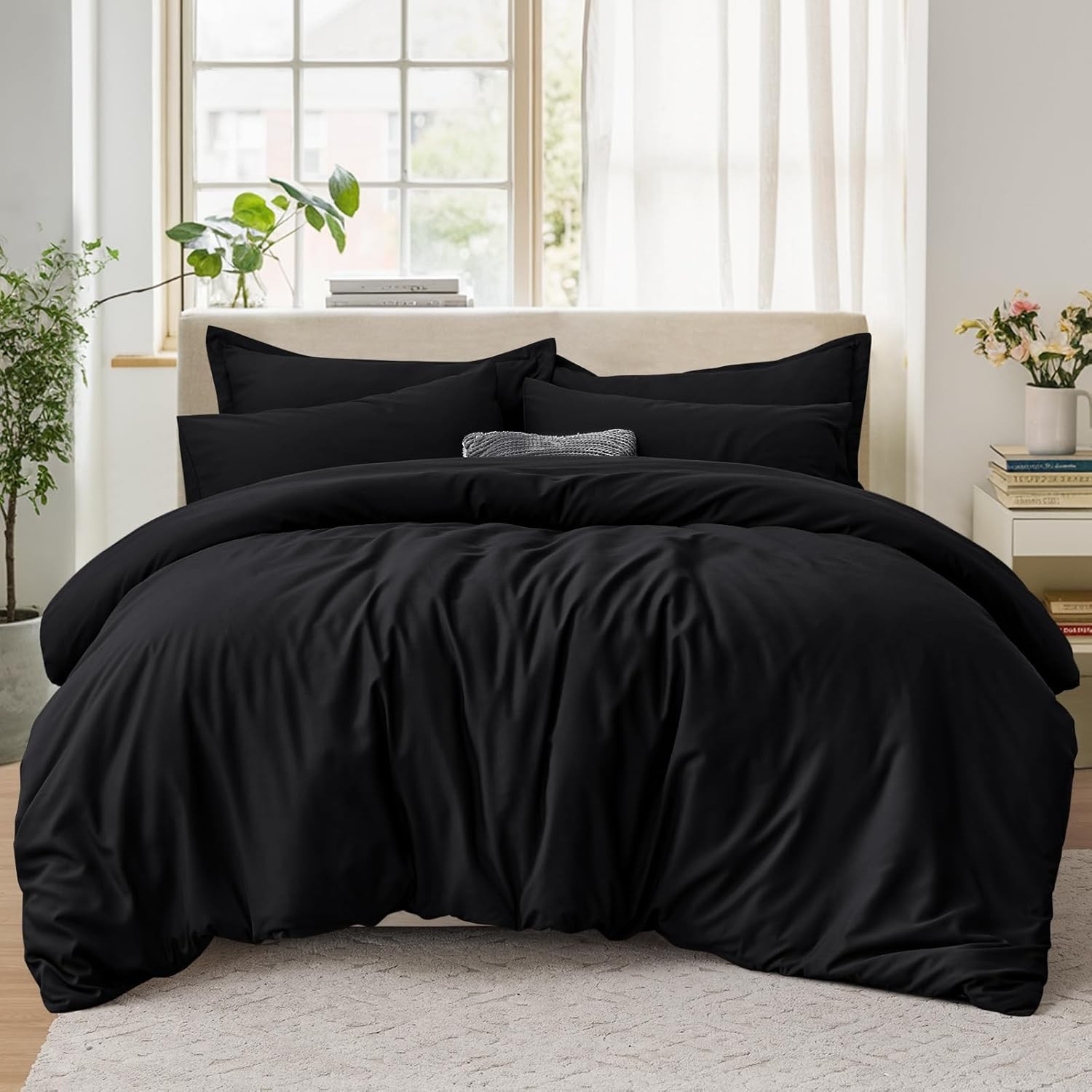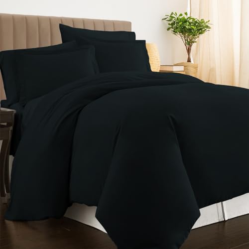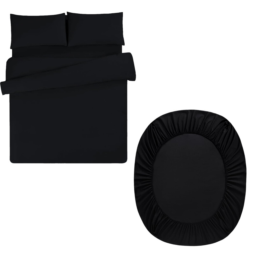 Aisbo Superking Duvet Set with Sheet - Black 4 Pieces Microfiber Bedding Set for Super King Bed, Includes Duvet Cover, Fitted Sheet and Pillowcases