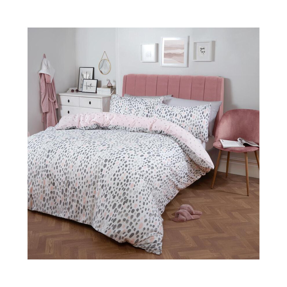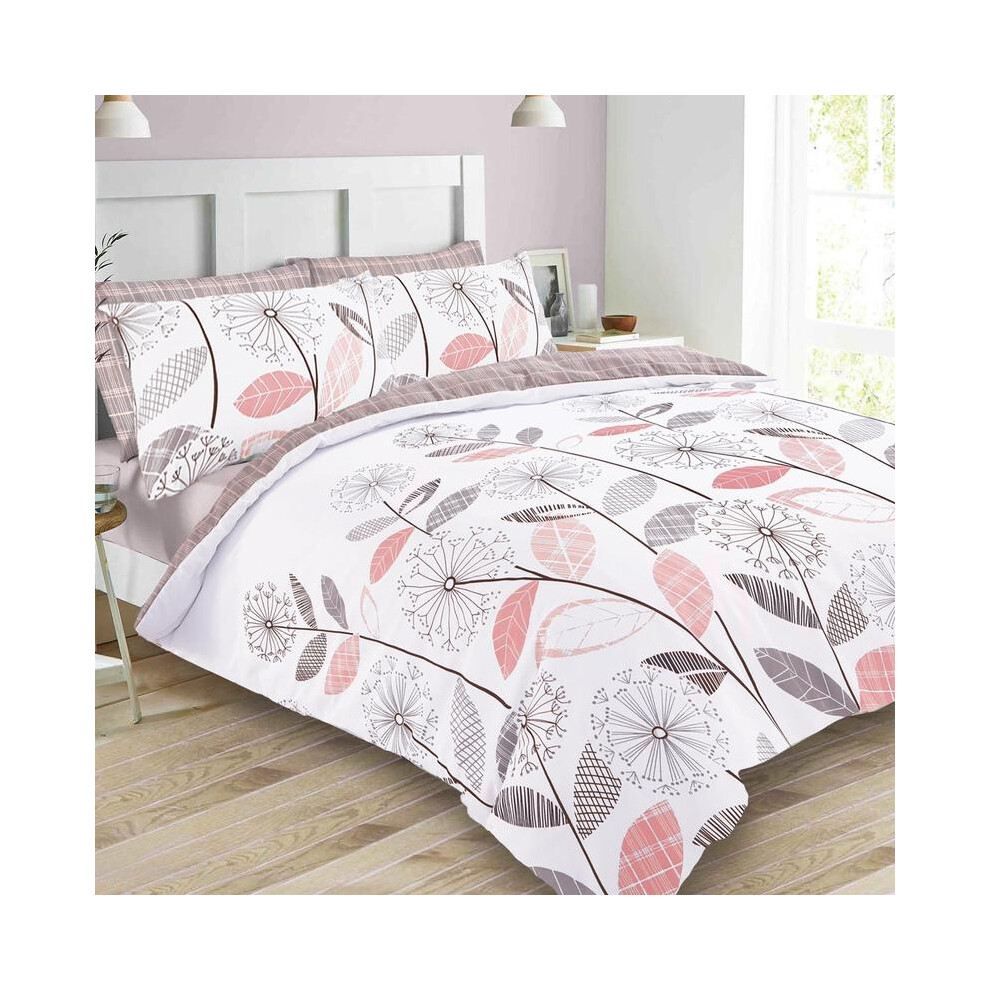 (Blush, Superking) OHS Allium Duvet Cover with Pillowcase Reversible Check Bedding Set Grey