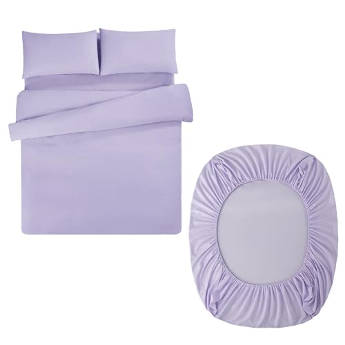 Aisbo Superking Duvet Set with Sheet - Lavender 4 Pieces Microfiber Bedding Set for Super King Bed, Includes Duvet Cover, Fitted Sheet and Pillowcases