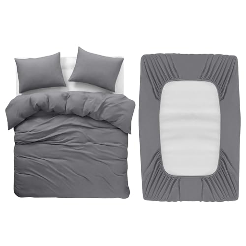BedLooms 4 Piece Super King Bedding Set Grey Duvet Cover Sets Fitted Sheet with Pilow cases Superking Duvet Set Soft and Fade Resistant Brushed Microfiber Bedding Quilt Cover set