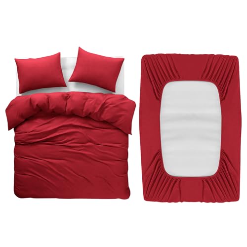 BedLooms 4 Piece Super King Bedding Set Burgundy Duvet Cover Sets Fitted Sheet with Pilow cases Superking Duvet Set Soft and Fade Resistant Brushed Microfiber Bedding Quilt Cover
