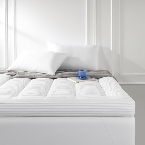 GC GAVENO CAVAILIA Satin Stripe Mattress Topper Super King - 10cm Thick Memory Foam Mattress Topper 198 x 203 cm - Hypoallergenic Mattress Pad with Elastic Straps - Premium Superking Mattress Toppers