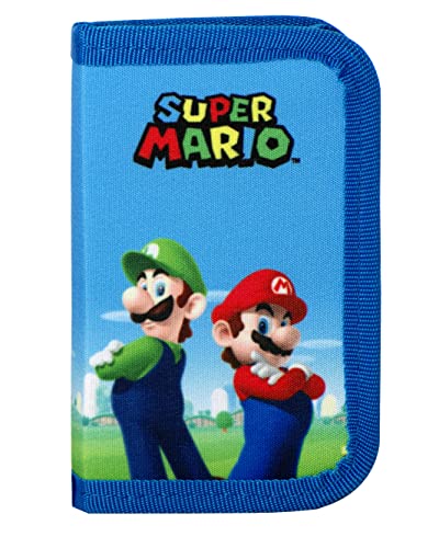 Franco Cosimo Panini Supermario Zip Around Wallet and Coin Purse with Card Slots and Coin Holder, Zip Closure and Inner Pocket, 12 x 10 x 2 cm, Blue Wallet, Taglia Unica, Casual