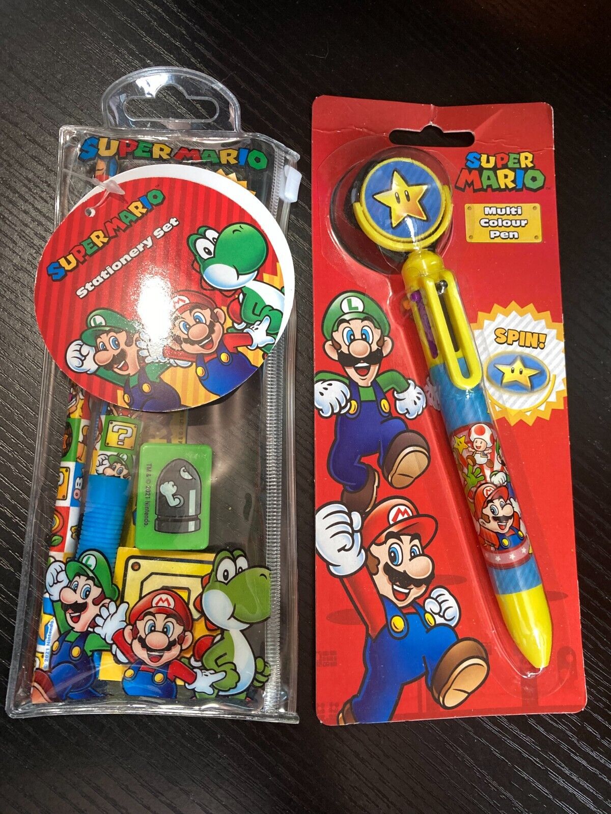 Super Mario Bros Stationery Set 5 Pcs + Multi Colour Pen - School Gamer Gift
