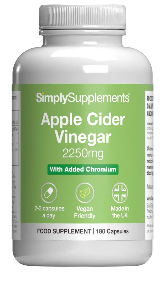 Apple Cider Vinegar 2250mg *180 Capsules *With Added Chromium