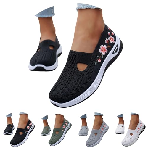 Deal+of+The+Day+Prime+Today Slip On Walking Shoes for Women UK Breathable Mesh Orthopedic Trainers Comfortable Wide Fit Arch Support Running Sneakers Comfy Trainers for Women Black 6.5