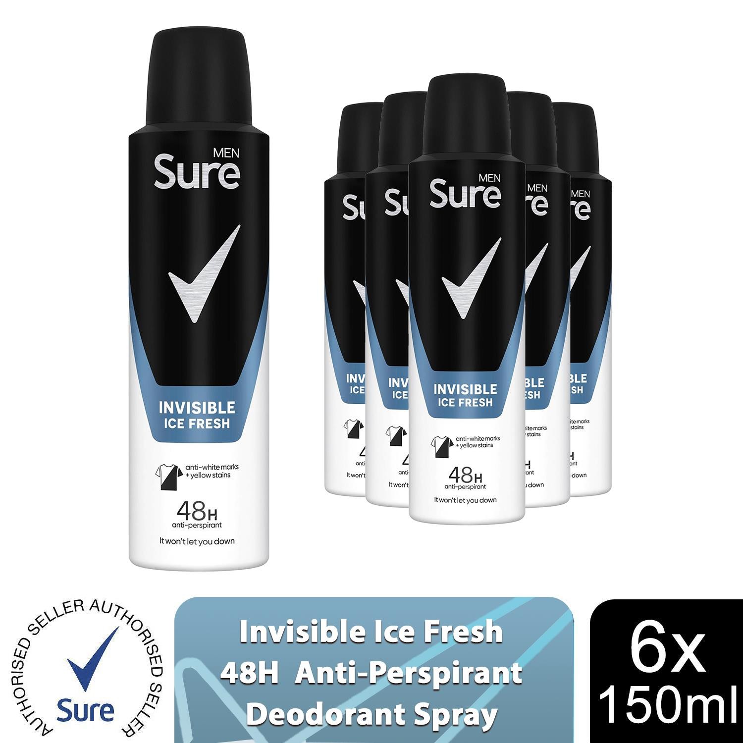 Sure Men Anti Perspirant 48H Protection Invisible Ice Deodorant, 6 Pack, 150ml