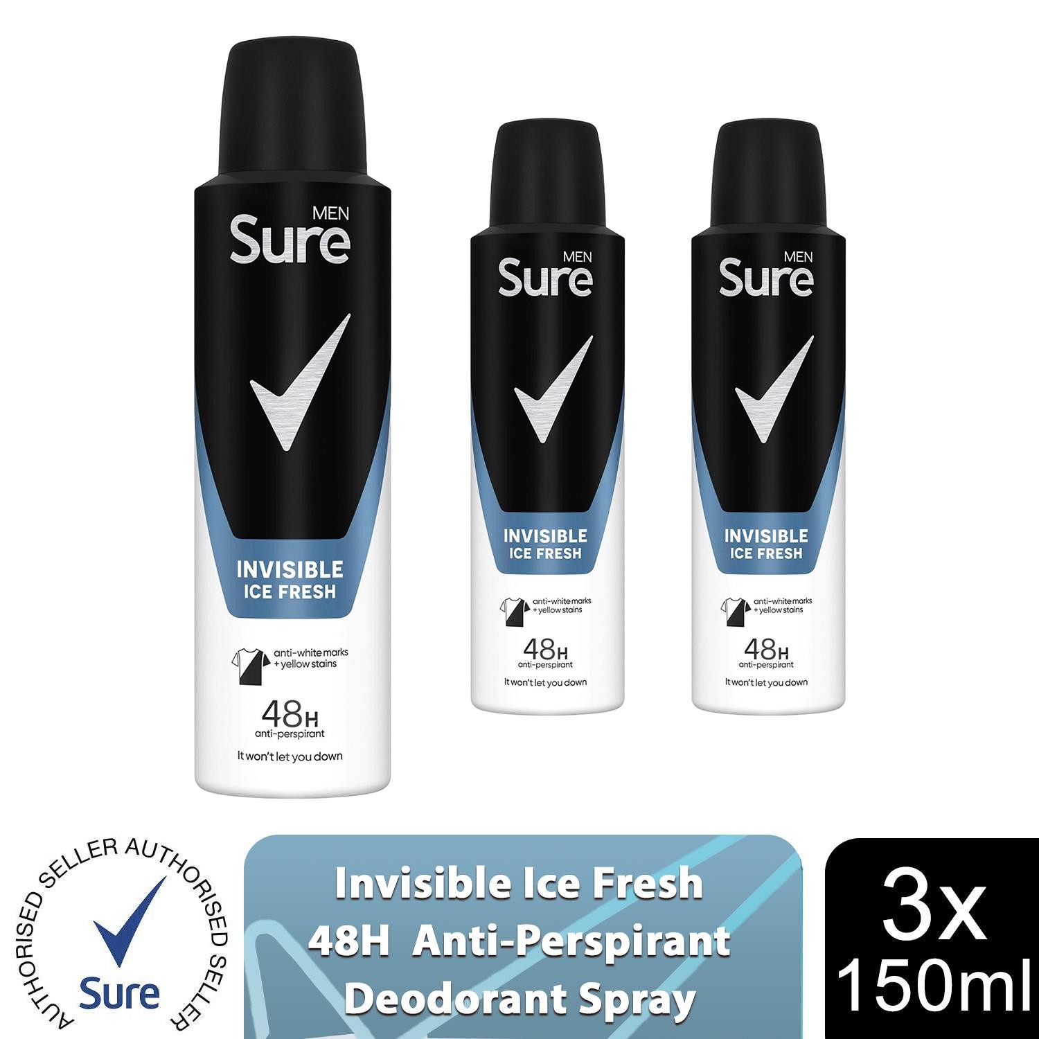 Sure Men Anti Perspirant 48H Protection Invisible Ice Deodorant, 3 Pack, 150ml