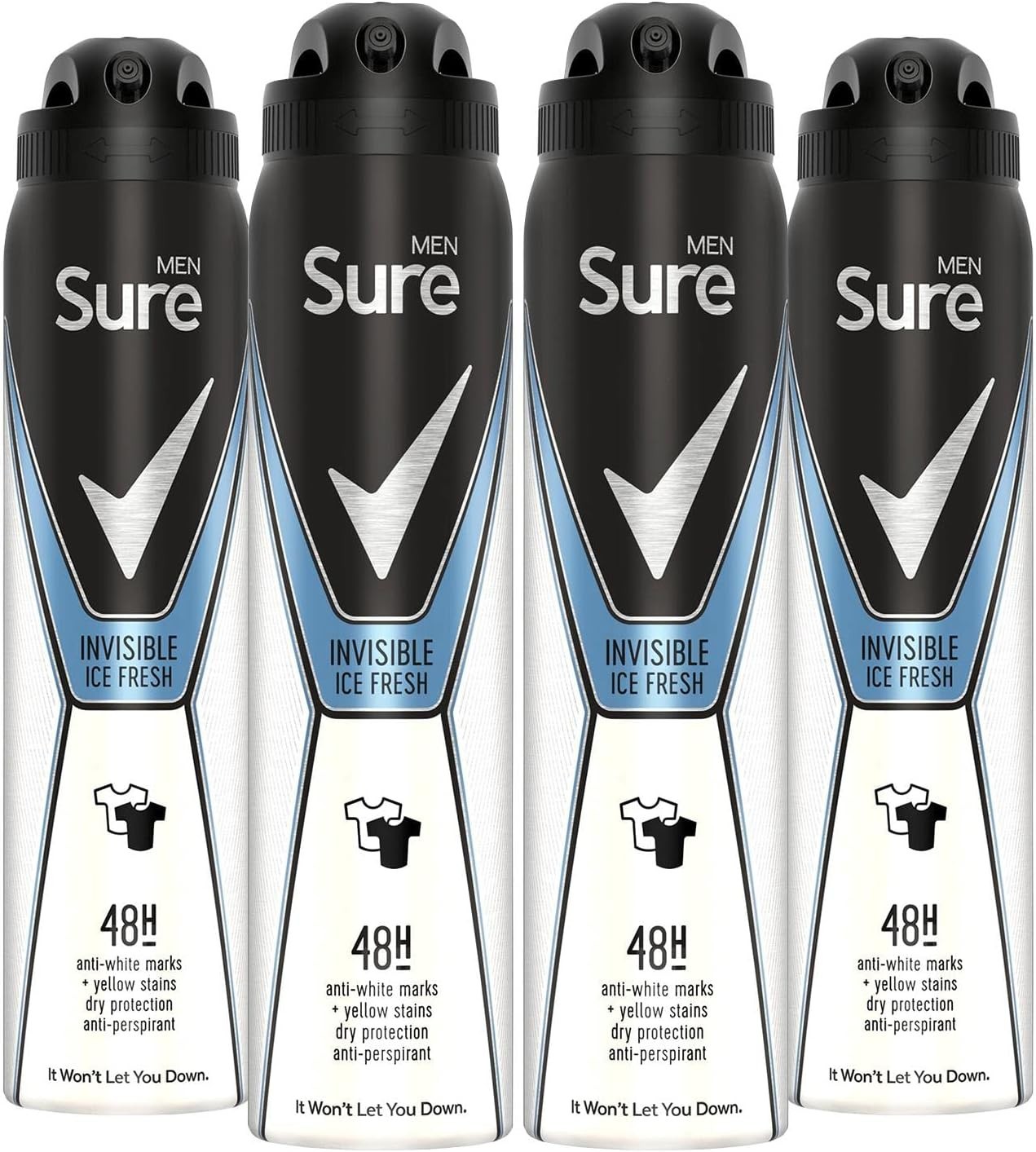SURE MEN ANTI PERSPIRANT 48H PROTECTION INVISIBLE ICE DEODORANT, 4 PACK, 150ML