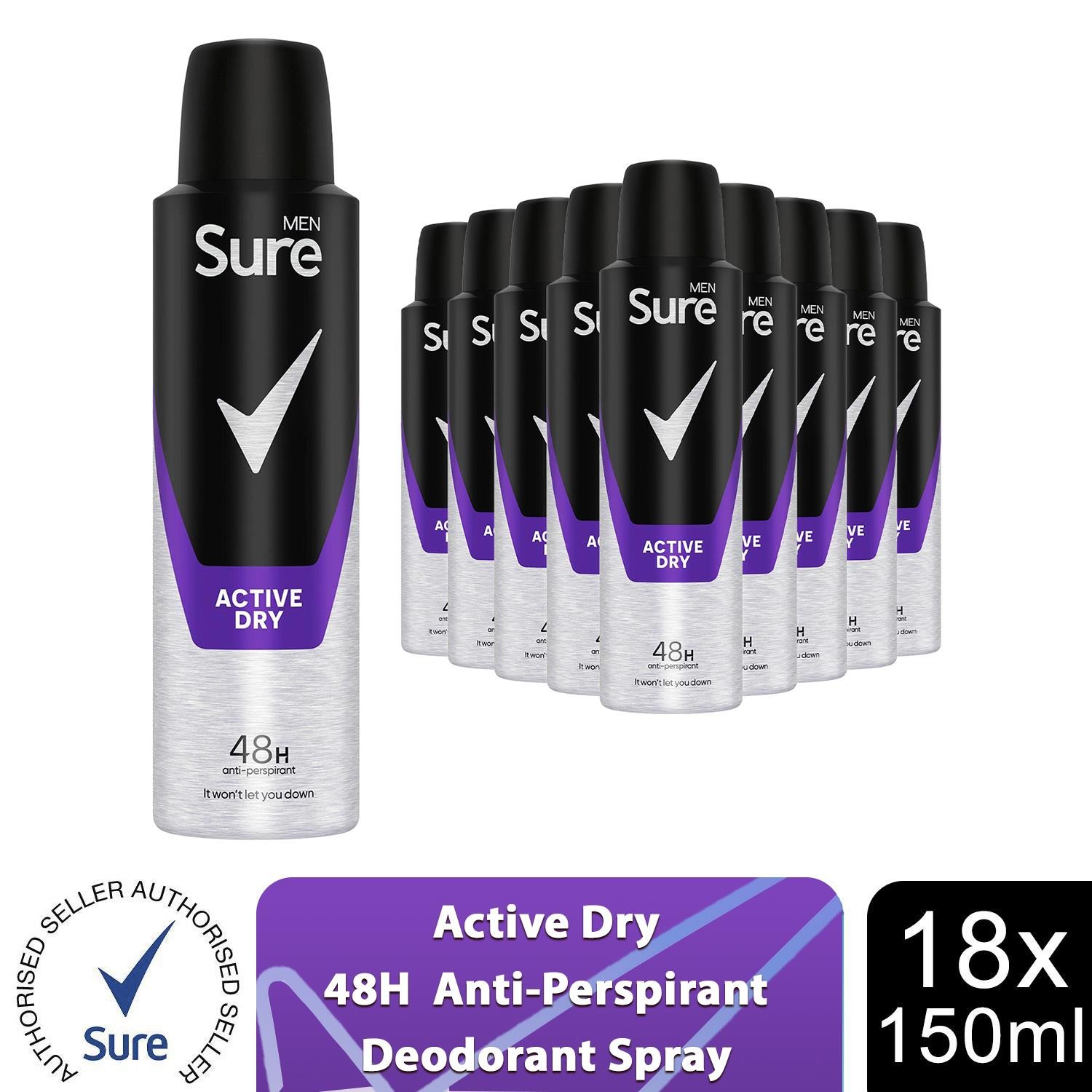 Sure Men 48H Protection Anti-Perspirant Deodorant Active Dry 150ml, 18 Pack