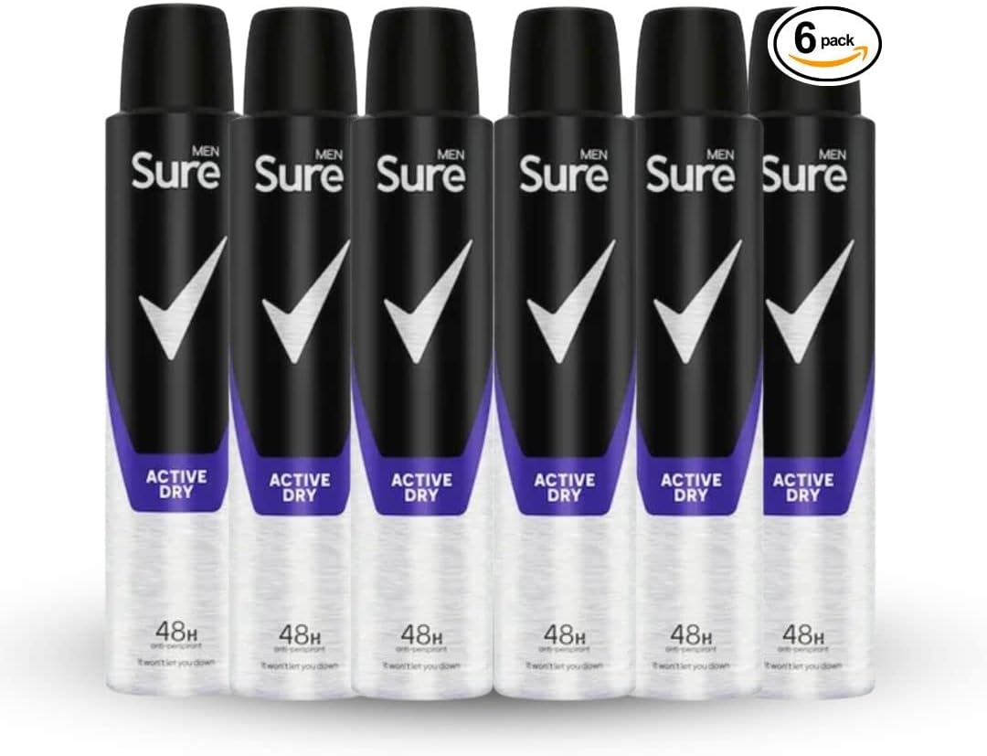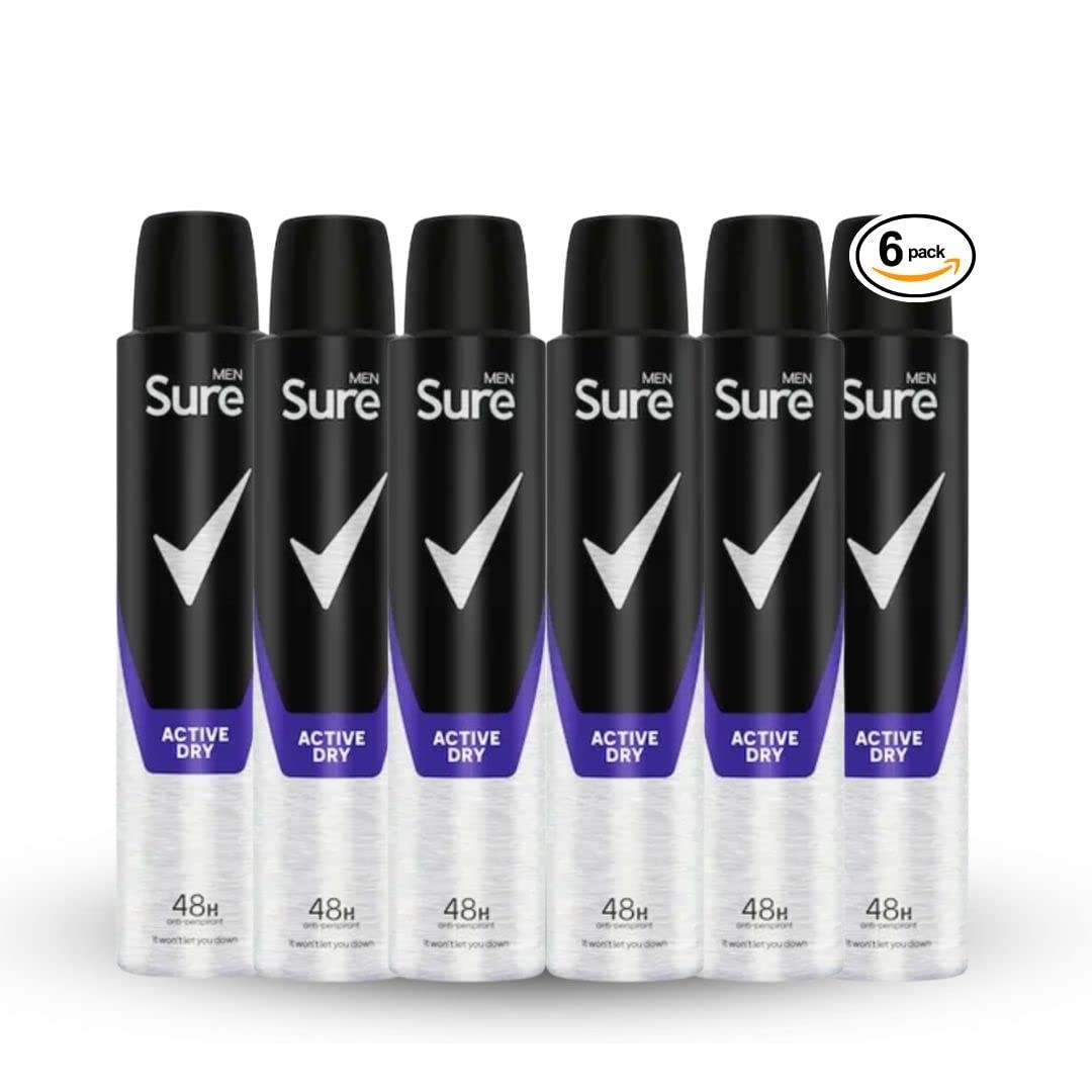 Sure Men Anti Perspirant 48H Active Dry Deodorant, 6 Pack, 250ml Fast delivery