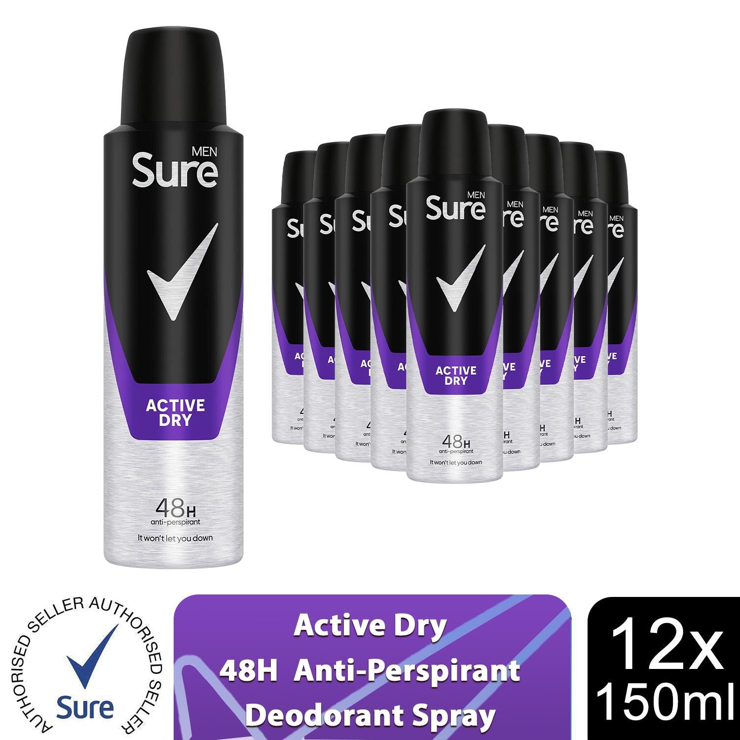 Sure Men Anti Perspirant 48H Protection Active Dry Deodorant, 12 Pack, 150ml