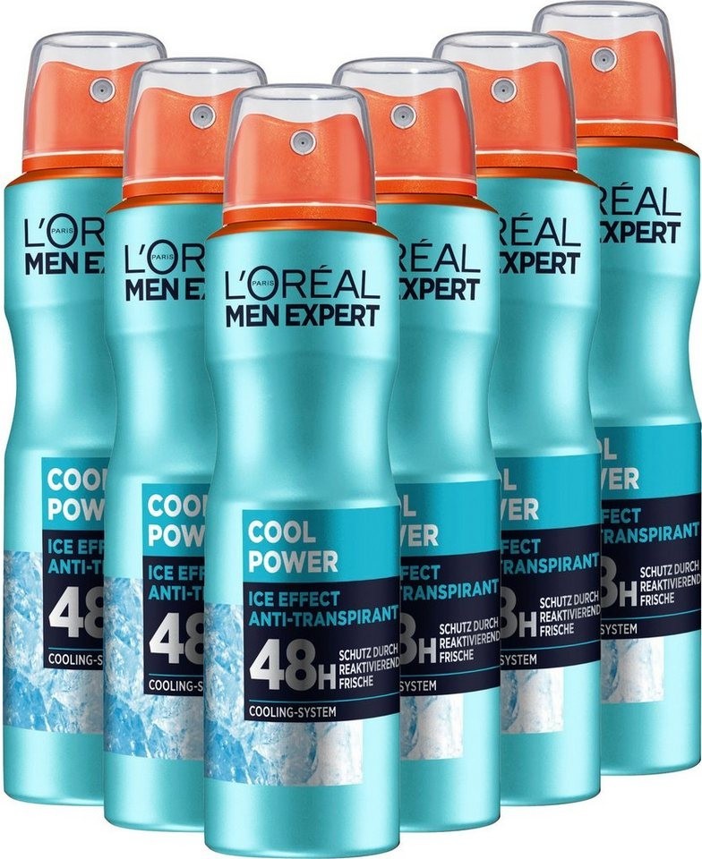 6 x 250ml XL L'Oréal Men Expert Cool Power 48H Ice Effect Deodorant Spray