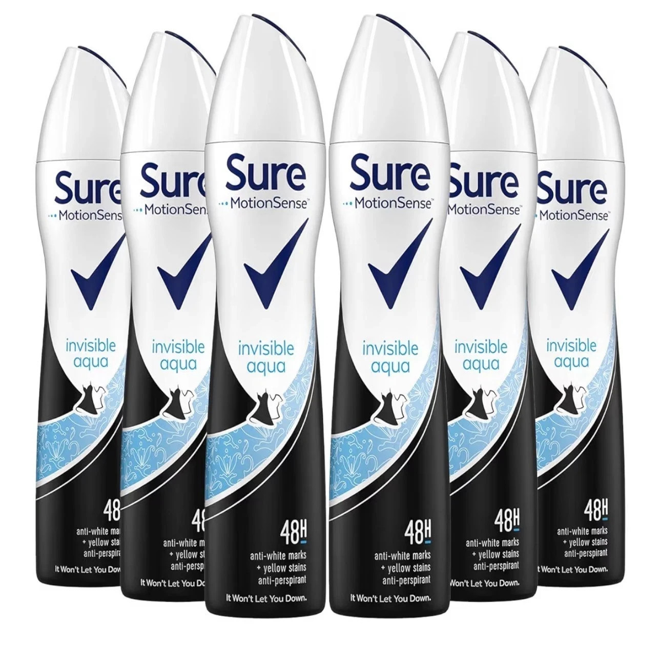 6 X 250ML Sure Women Anti-perspirant 48H Nonstop Protection Invisible Aqua
