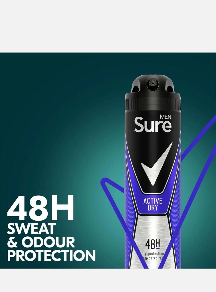3 X SURE ACTIVE 48HR ANTIPERSPIRANT DEODORANT SPRAY 150MLS NEW FREE P&P