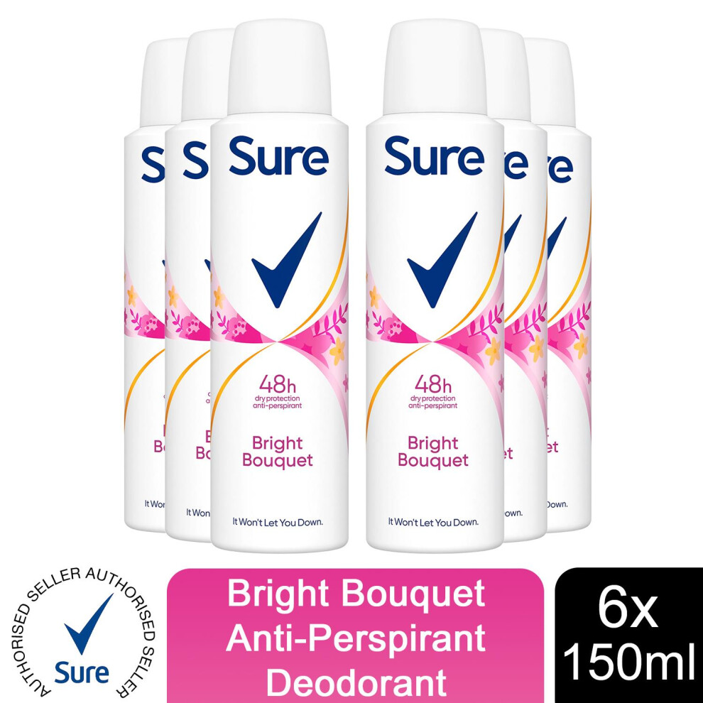 Sure Women Antiperspirant Deodorant, Bright Bouquet, 6 Pack Of 150ml