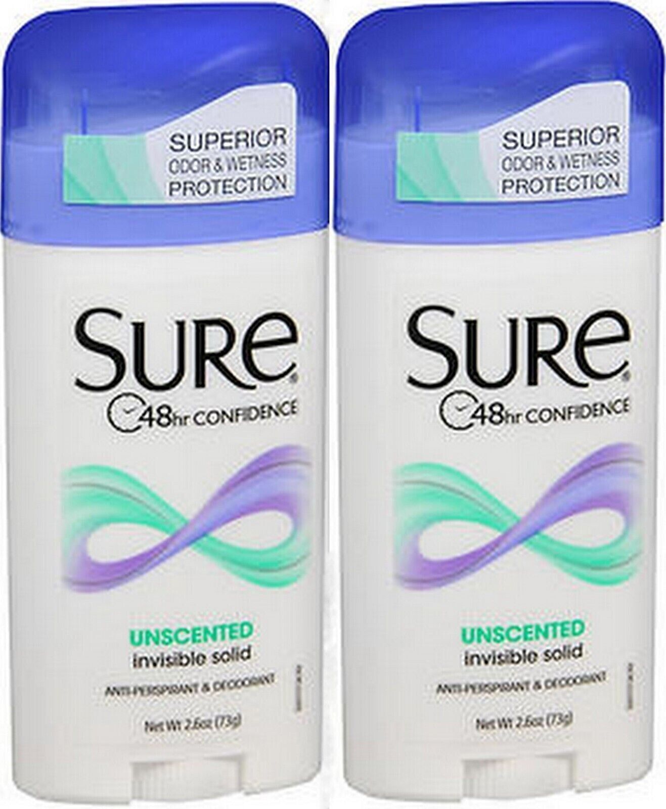 Sure Anti-Perspirant Deodorant Invisible Solid Unscented 2.6oz ( 2 pack )