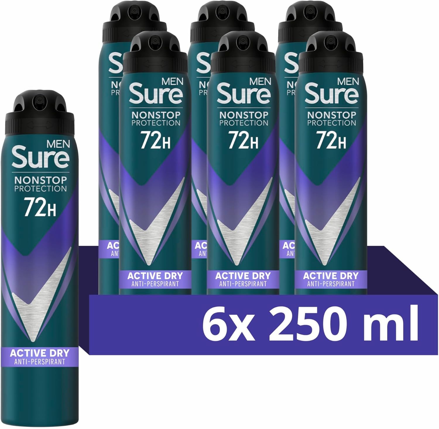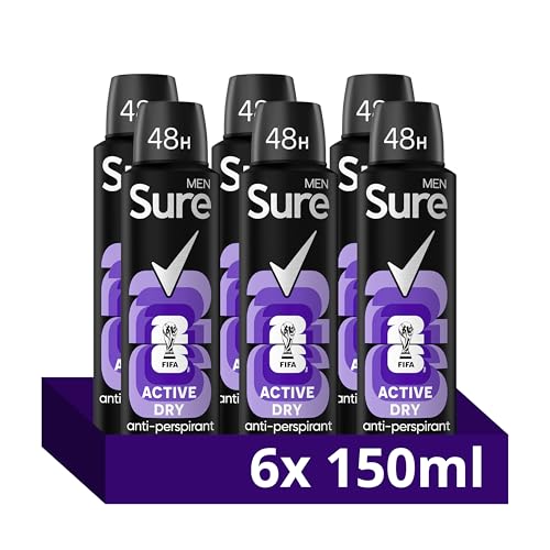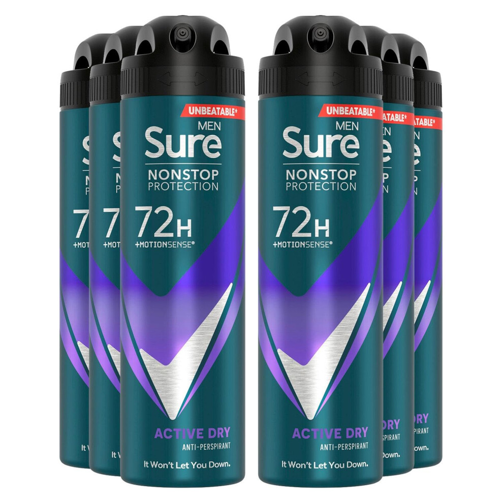 Sure Men Active Dry Anti-perspirant Deodorant Aerosol 48h protection antiperspirant deodorant spray for effective sweat and odour protection 6x 150 ml