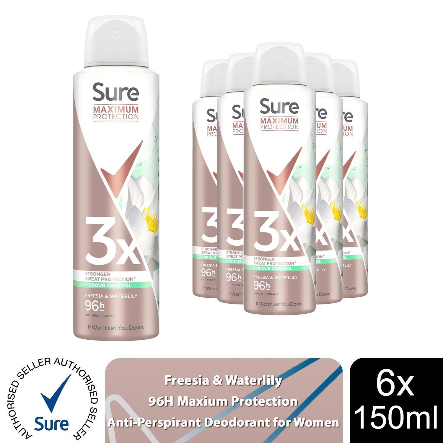 Sure Women Maximum Protection Antiperspirant Spray Freesia&Water Lily, 6x150ml