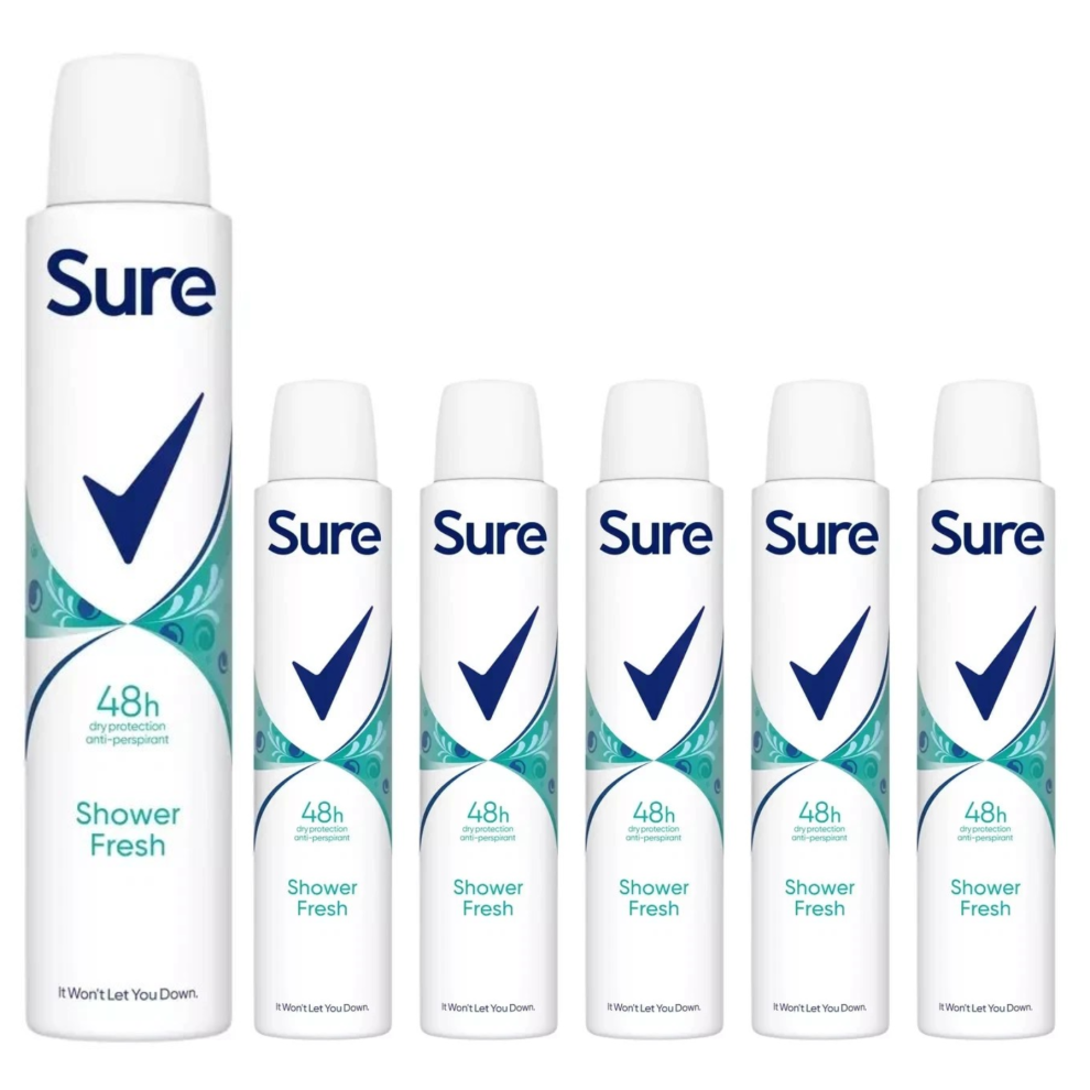 6 x 200ml Sure Shower Fresh 48H Anti-perspirant Ladies Deodorant Spray