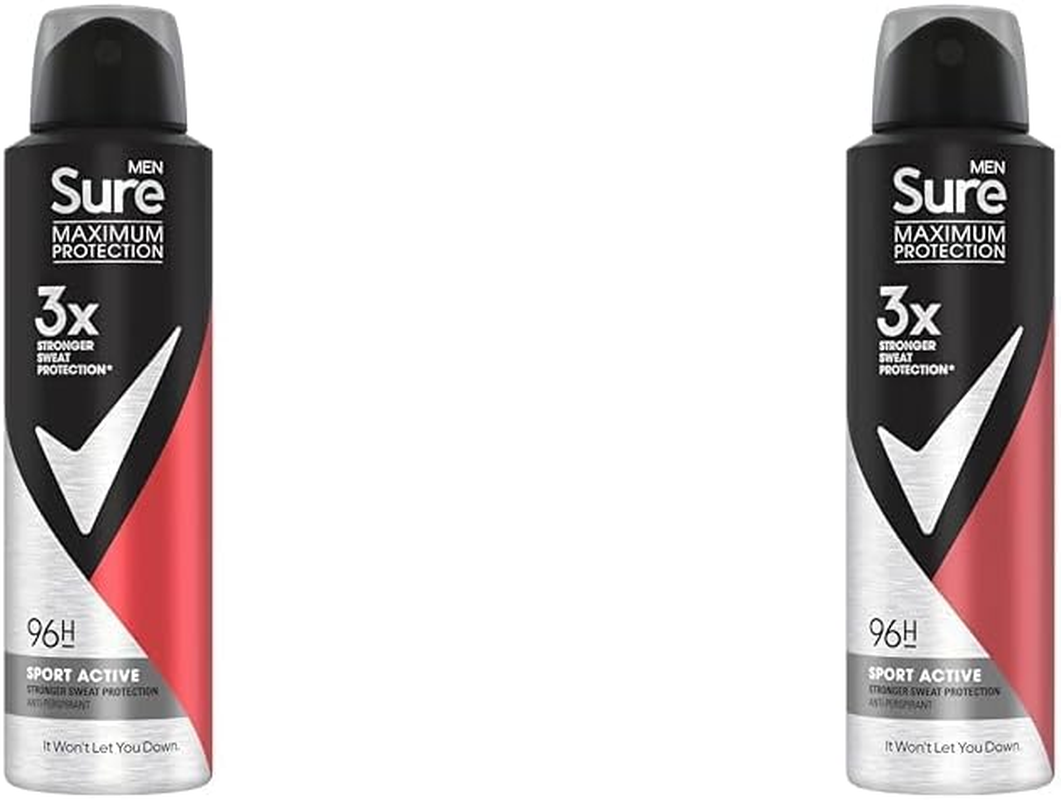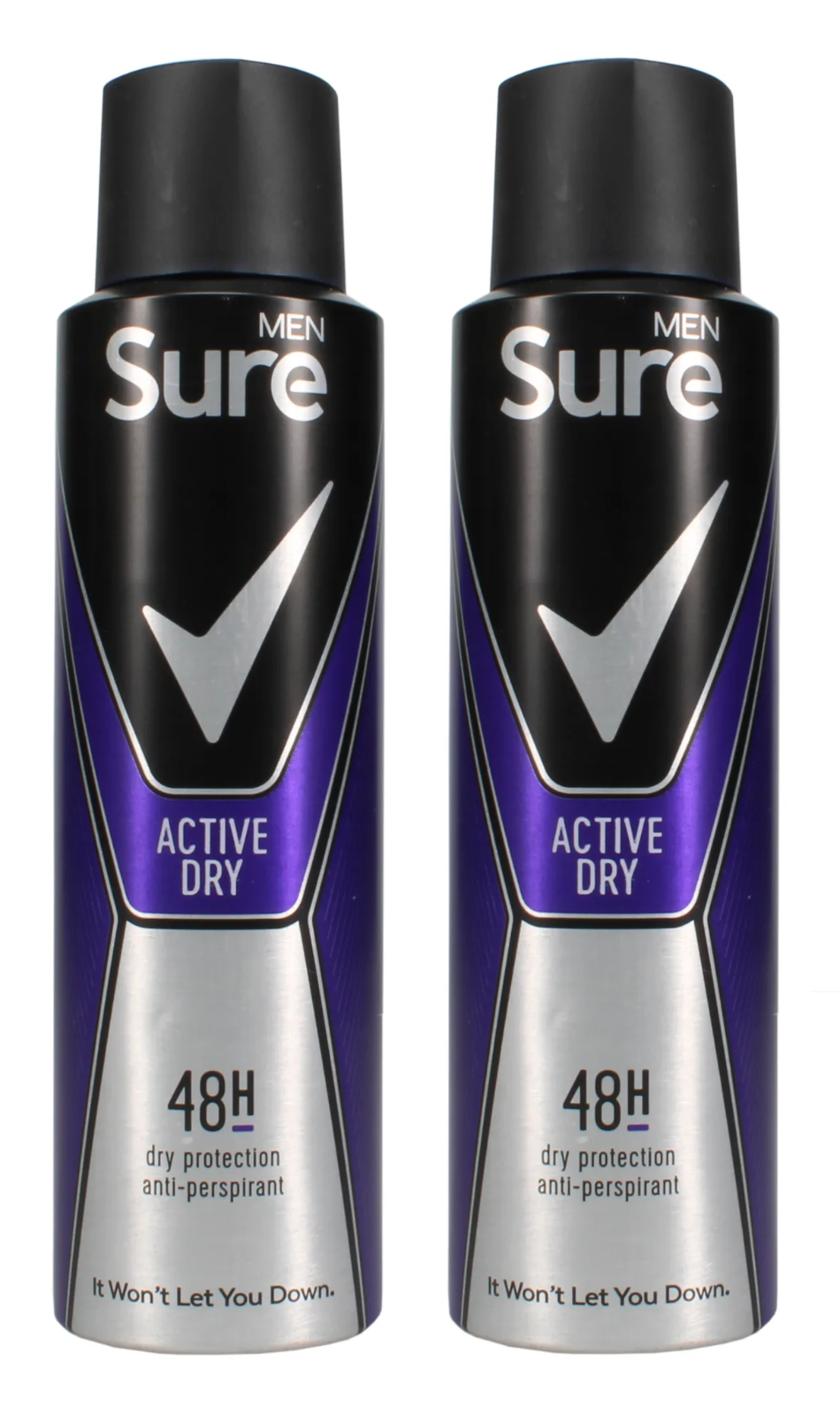 2x Sure Men ACTIVE DRY Antiperspirant Deodorant Spray 150ml