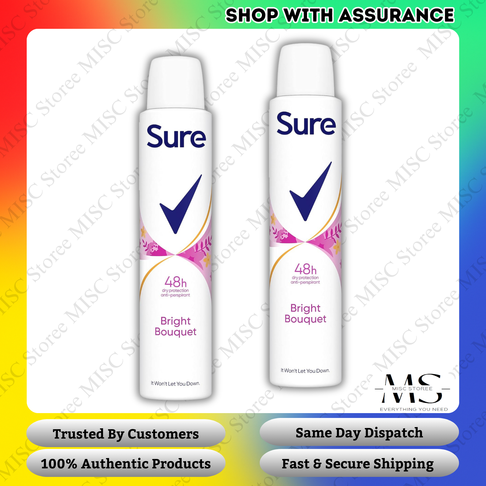 2 x Sure Bright Bouquet Anti-Perspirant Deodorant Spray – 200ml Each -New
