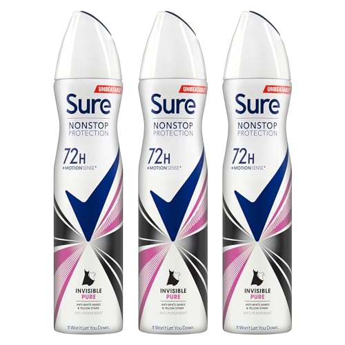 Sure Antiperspirant 72H Nonstop Sweat and Odour Protection Alcohol-Free Body Spray Anti-White Markswith Fresh and Clean Multi Fragrance Deodorant for Women, 250ml (Invisible Pure, Buy 3)