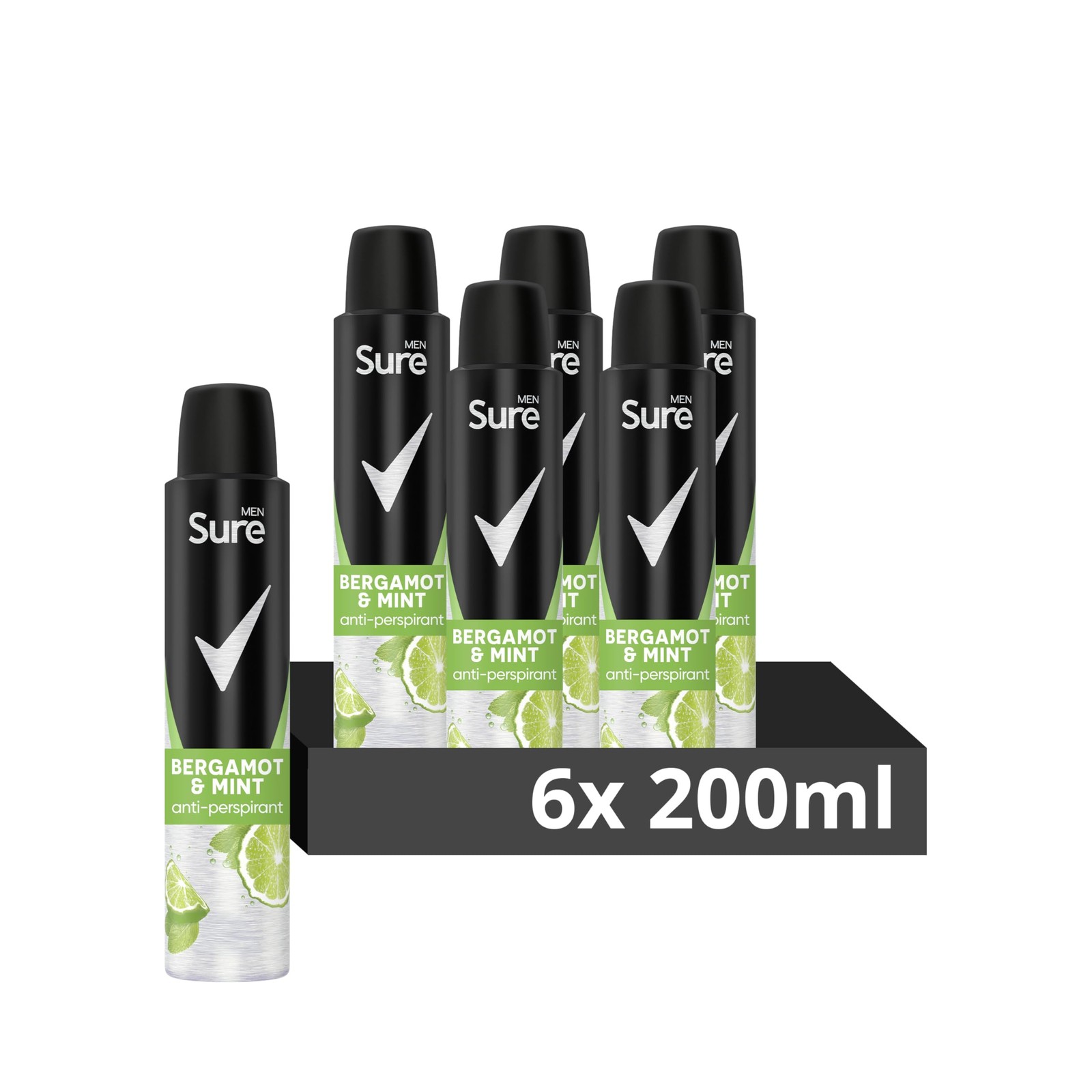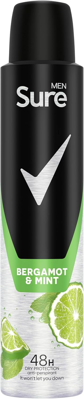 Sure Men Bergamot & Mint Deodorant Body Spray Antiperspirant with an energising scent and 48 hour sweat and odour protection 200 ml