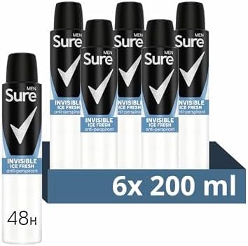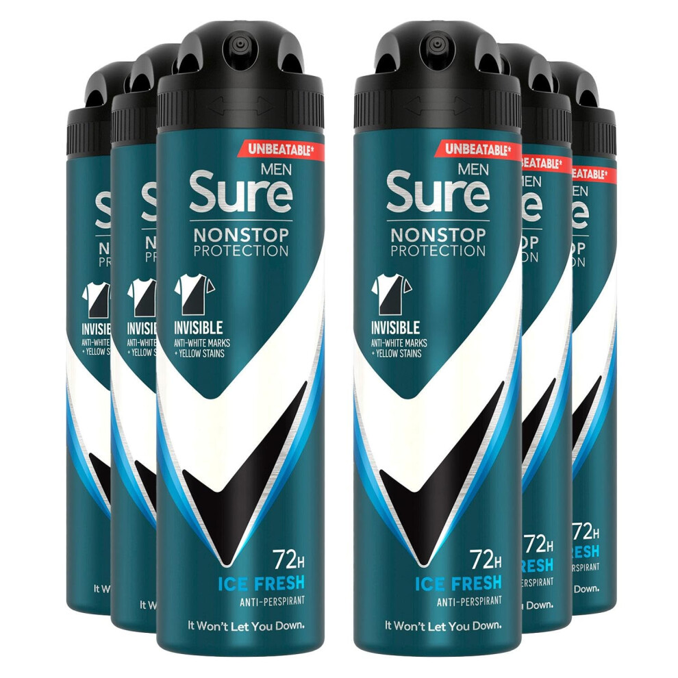 Sure Men Invisible Ice Fresh Anti-Perspirant Deodorant Spray, 200ml, Pack of 6