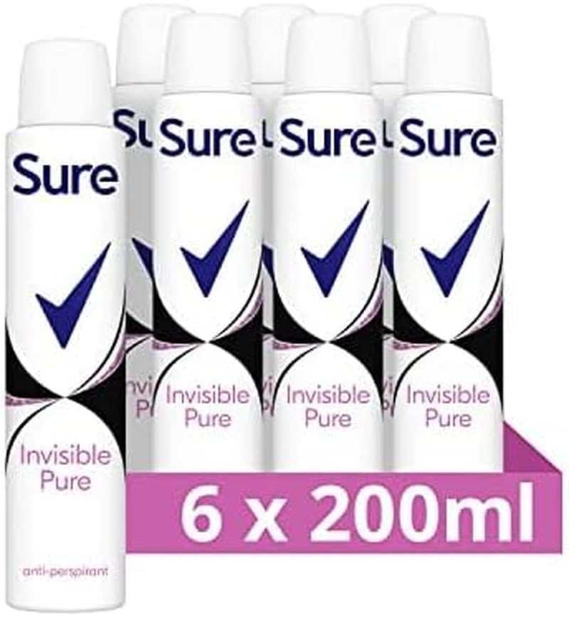 Sure Invisible Pure Anti-Perspirant Deodorant Spray Women 48H Protection 6x200ml