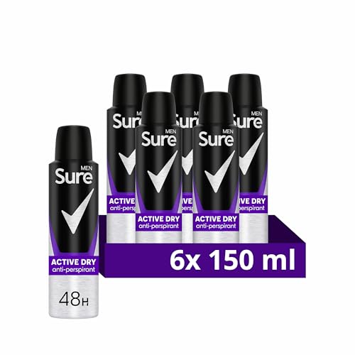 Sure Men Active Dry Anti-Perspirant Aerosol Men's Deodorant Spray with MotionSense technology for 48 hour protection against sweat and odour 6x 150 ml